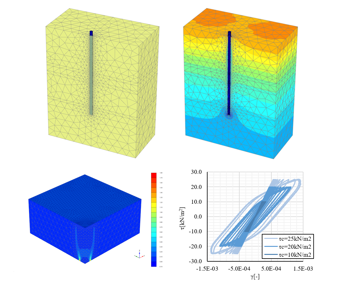 このたび弊社では、PLAXIS向けユーザーサブルーチン「HSLSモデル(Hashiguchi Sub Loading Soil)」を新たにリリースいたしました。 HSLSモデルは、九州大学名誉教授 橋口公一先生が提唱する「土の下負荷面モデル」をPLAXISのユーザーサブルーチンとして実装したモデルであり、様々な長所を備えています。 本モデルでは、弾性変形から塑性変形への滑らかな遷移と軟化挙動、繰り返し作用によって生じる塑性変形の集積など、従来の弾塑性モデルでは再現が難しかった現象を精度高く表現することができます。