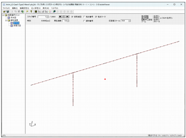 - ラーメン橋では橋全体系のプッシュオーバー解析による固有周期、終局震度、水平変位の制限値算定、破壊形態の判定が行えます(2次元モデルで1連をモデル化した時のみ)。